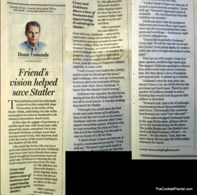 On next Sunday’s Golden Apple Cabaret my guests will be Howard Goldman and Mary Kunz Goldman as we discuss the music, nightlife and culture scene in Buffalo, New York. Mary has worked as an artist, newspaper reporter and music critic with a lifelong history and commitment to sharing stories of the talent and personalities of the second largest city in the state of New York.Howard, an entrepreneur, pianist and vocalist, is creator and host of “LoungeACADEMY”. Informal Monday jam sessions in their home led to the creation of this popular and long running cabaret experience that is currently running and live streamed weekly in the beautiful Buffalo Hyatt Regency Hotel.We will chat and listen to the music of famous musicians out of Buffalo such as Harold Arlen and those who deserve a wider recognition such as talented performers Jackie Jacko and Dodo Greene.Please join us Sunday, April 3rd at 6PM (EST) live-streaming on the internet at https://wvox.com or on the radio in New York City on WVOX 1460 AM.